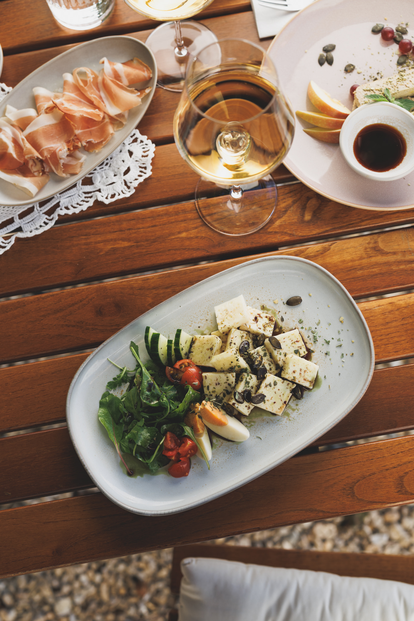 Wer zu uns zum Essen kommt, darf ruhig wählerisch sein. Was bei uns auf den Tisch kommt, hat Tradition. Etwa die klassische Jause mit Verhackert, Würstel, Kren und frischem Brot, das wir selbst backen. In der Buschenschank sind das die Brett‘l, die die Welt bedeuten – bei uns ist das natürlich nicht anders. Gleichzeitig betreten wir aber auch gerne kulinarisches Neuland, mediterran inspiriert. Dabei werden nicht nur jene satt, die vom feinen Leberparfait naschen, sondern auch alle, die sich vegetarisch und vegan ernähren.